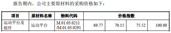 由上表可知,运动平台应是运动平台及其组件类原材料中具有代表性的内容;而且,报告期内,运动平台的采购价格指数呈逐年下降趋势。