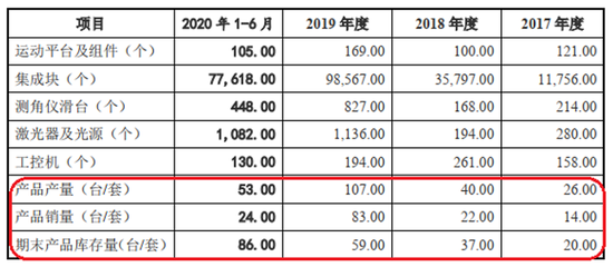 根据上表数据及勾稽关系可计算出,2018-2019年及2020年上半年,产品期末库存量的理论值分别为38台、61台和88台,比披露的产品库存量分别多了1台、2台和2台。