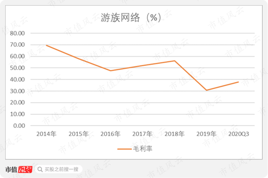 2014年,游族网络的毛利率高达69.63%,但到了2019年,已经下滑至30.86%。