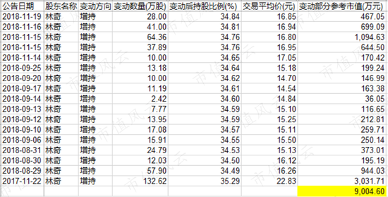 其实,在2019年之前,林老板的股份变动记录,还是清一色的增持,合计9,004.60万元。