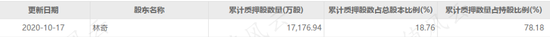 除了减持,林老板还累计质押了78.18%的股权。不过,还是不要太高兴了,今日13.00元上下的股价,离10.05元/股的平仓线,着实不怎么远啊。
