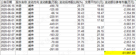进入到2020年就更加肆无忌惮了,林老板合计减持套现了5.11亿元。