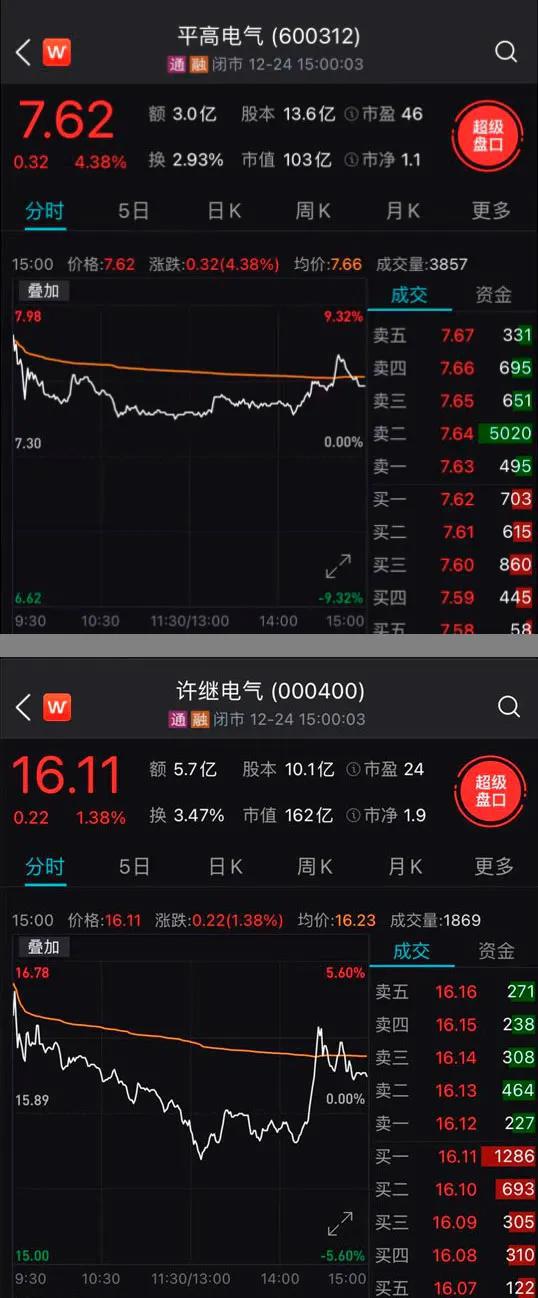 国家电网有限公司(下称“国家电网”)下属的两家上市平台许继电气、平高电气也都出现了不同程度的上涨。