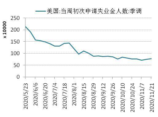 最新数据显示,三季度以来,美国经济指标逐步转暖。美国三季度实际GDP环比折年率修正值为增33.1%。美国11月21日当周初请失业金人数77.8万人,连续13周处于百万关口下方,预期73万人,前值修正为74.8万人。美国10月耐用品订单环比增1.3%,预期增0.9%,前值增1.9%,突显制造业对经济的支撑。美国11月Markit制造业PMI初值56.7,刷新近74个月以来新高,预期53,前值53.4。