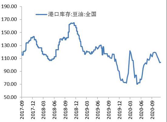 截止11月24日,国内豆油港口库存总量103.7万吨,较上月同期降7.7%,较去年同期增5.8%。全国港口食用棕榈油库存总量43.6万吨,较上月同期增10.7%,较去年同期降低33%。