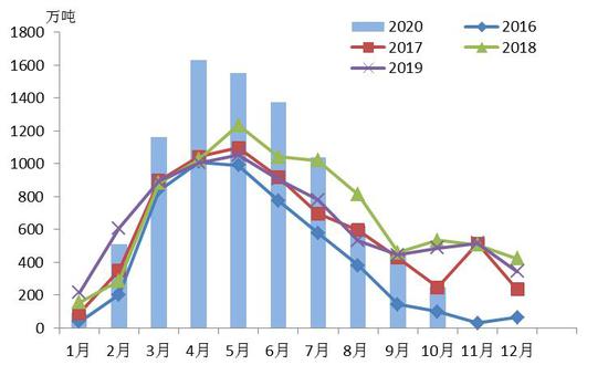 图6:巴西大豆月度出口量(万吨)