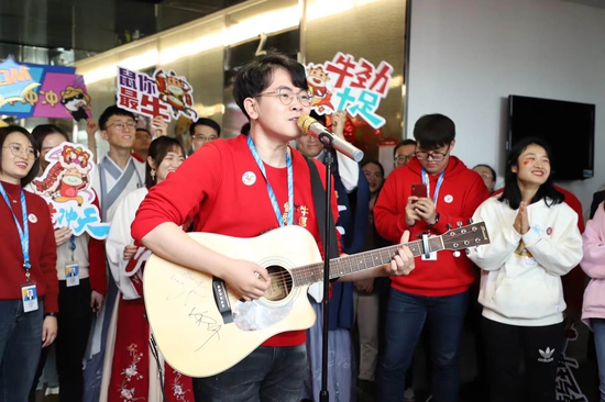 司庆当天,苏宁总部各处都“红红火火”,多年延续的“红装入园”传统,仪式感拉满,一路能收获各种礼物。12月生日的员工集体过生日,特色生日面、精美大蛋糕一早就开启苏宁人的味蕾;各种富有年代感的老物件像放电影般回放着1990-2020三十年的发展历程;各大网红和赛博朋克风的游戏赚足眼球。
