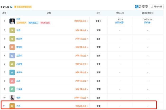 据企查查显示,在林奇相关联的企业中,有两位许姓高管,一位是游族网络董秘兼副总经理许彬,另一位是三体宇宙(上海)文化发展有限公司董事许垚。