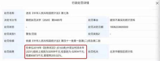 12月14日,有媒体爆出燕窝品牌“小仙炖”旗下的北京市小仙炖电子商务公司被北京市朝阳区统计局处罚,原因是登记“营业利润”有误。根据披露的处罚信息得出,小仙炖上报的2019年营业利润是32939千元,而实际则是亏损32934千元,差错率达200%。