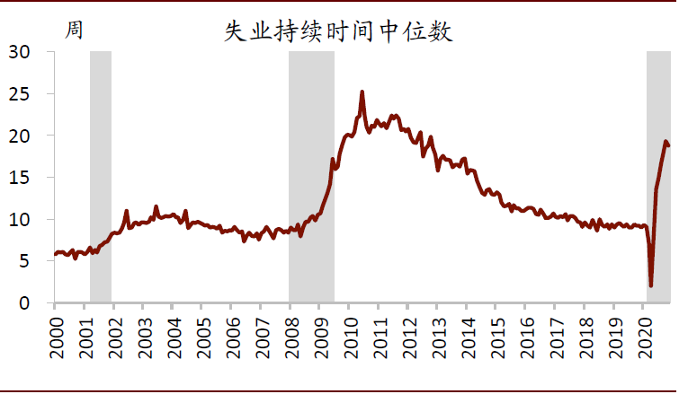 图表: 失业劳动力的失业持续时间明显增加