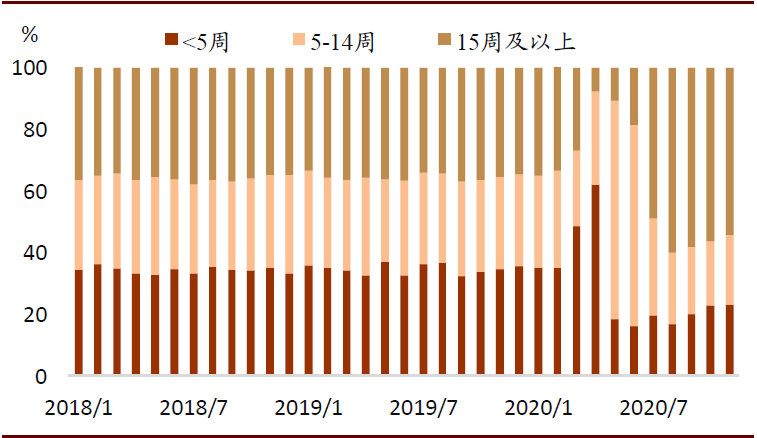 图表:临时性失业持续时间分布