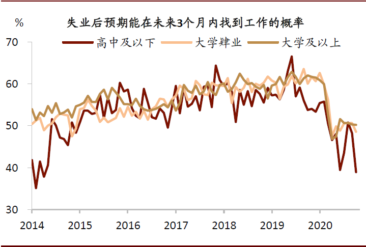 图表: 不同学历劳动力对于失业后找到工作的预期