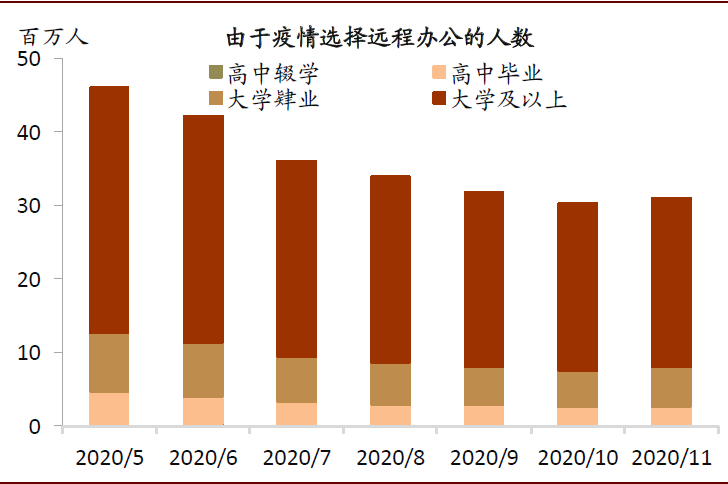 图表:高学历劳动力易于实现线上办公