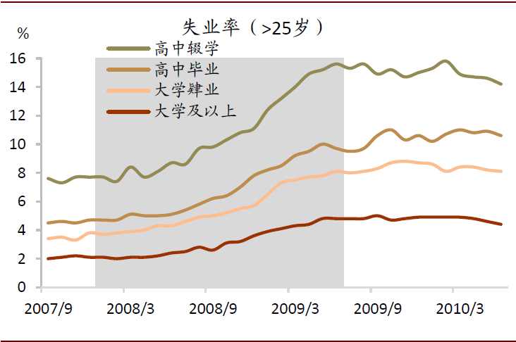 图表:经济衰退对不同学历劳动力的冲击存在差异