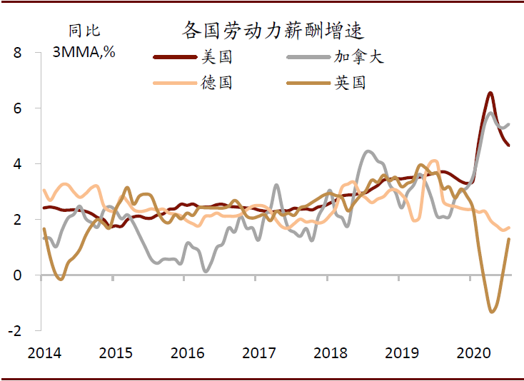 图表:各国不同的政策选择导致了薪酬增速的差异