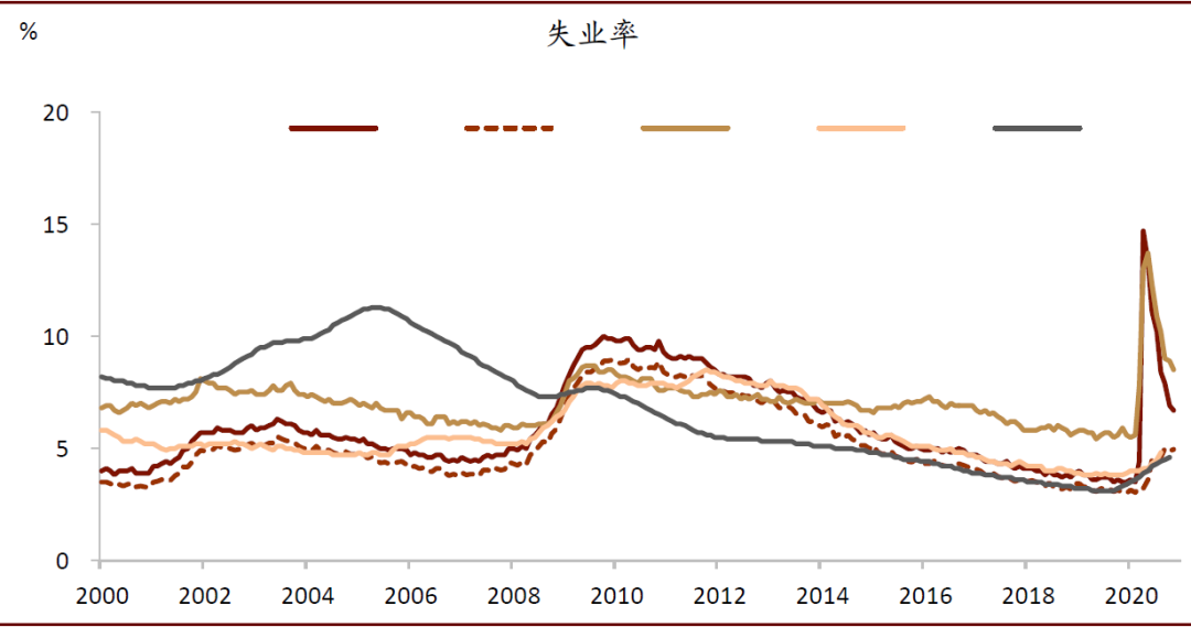 也需警惕慷慨救济金对再就业意愿的影响。如果救济金退坡速度慢于疫后经济复苏的步伐,劳动力市场的供不应求可能加剧,并进一步推升薪资增速。但从近期美国国会与总统对居民收入补贴规模的争端来看,随着疫情的好转,补贴或亦会较快退坡,也将压制薪酬上升的动能。