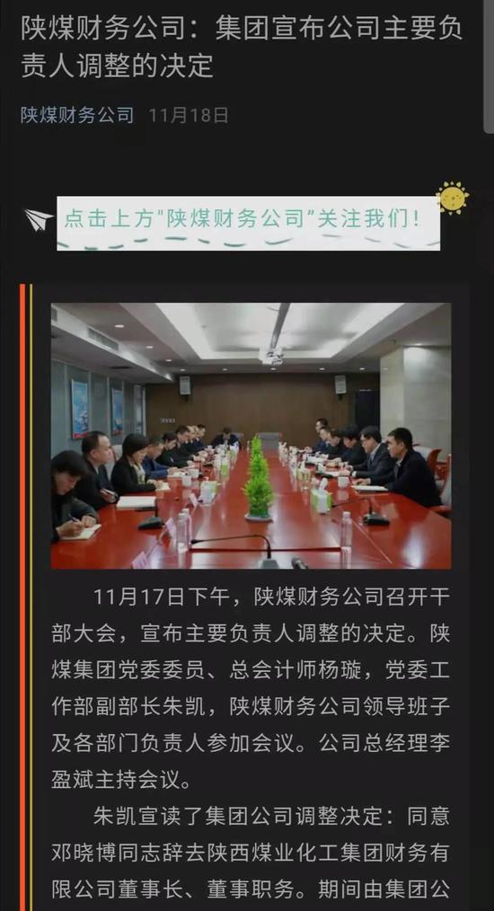 目前,陕煤集团财务公司的法定代表人仍是邓晓博。