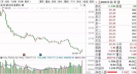 但是,新希望今年9月2日最高见到42.20元之后单边持续下跌,上周五的低点是20.50元,腰斩的股价让投资者唏嘘不已。