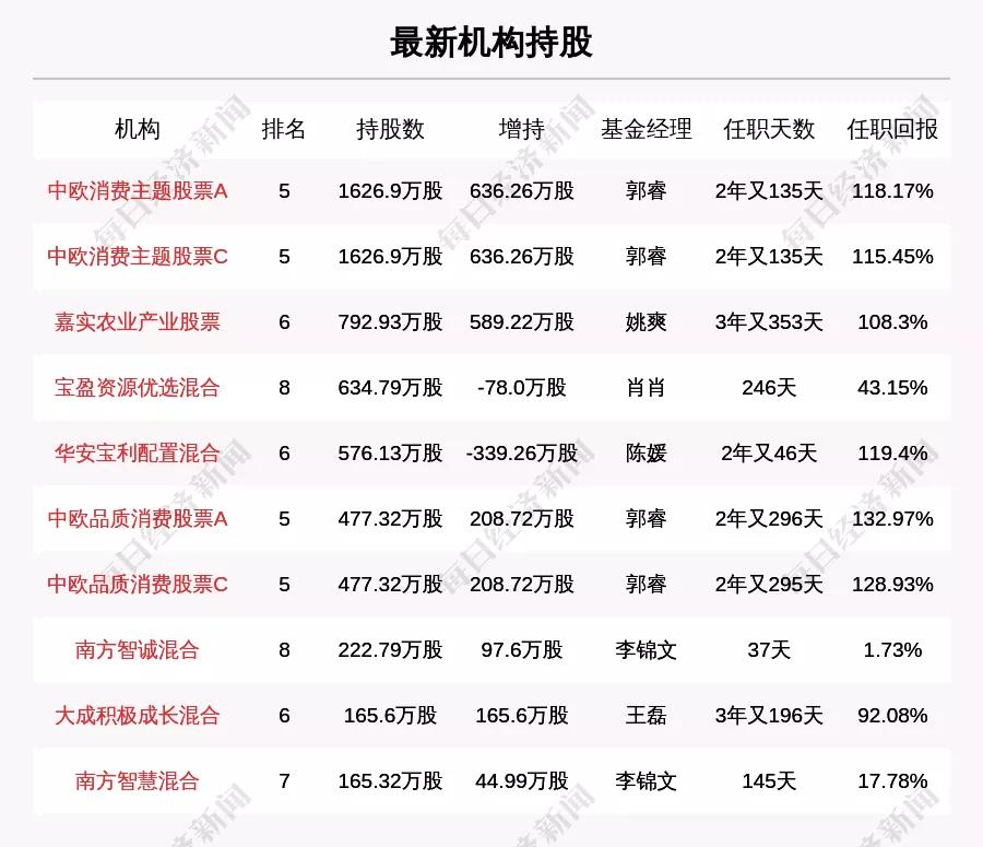 值得注意的是,郭睿管理的“中欧品质消费股票A”基金还持股477.32万股,三季度的时候增持了208.72万股。郭睿管理的基金累计持股超过2100万股。