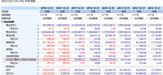 数据显示,润东汽车2018年营业收入为127.1亿元,较2017年下降33.5%;净利润为-15.1亿元,较2017年由盈转亏;新车销量则为49583辆,较2017年下降33.8%,其中豪华及超豪华品牌新车销量较2017年同期下降27.3%。