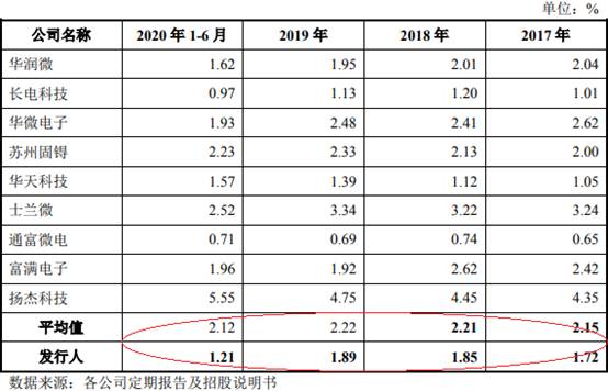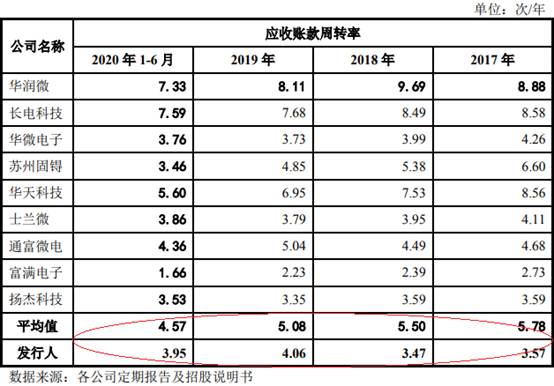 2017年至2020年1-6月,蓝箭电子应收账款周转率分别为3.57次、3.47次、4.06次、3.95次,同行业上市公司均值分别为5.78次、5.50次、5.08次、4.57次。