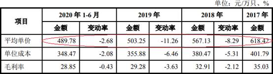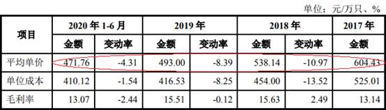 蓝箭电子产品价格连降。其中,2017年至2020年1-6月,蓝箭电子自有品牌分立器件产品的平均单价分别为604.43元/万只、538.14元/万只、493.00元/万只、471.76元/万只,2018年、2019年、2020年上半年分别下降10.97%、8.39%、4.31%。