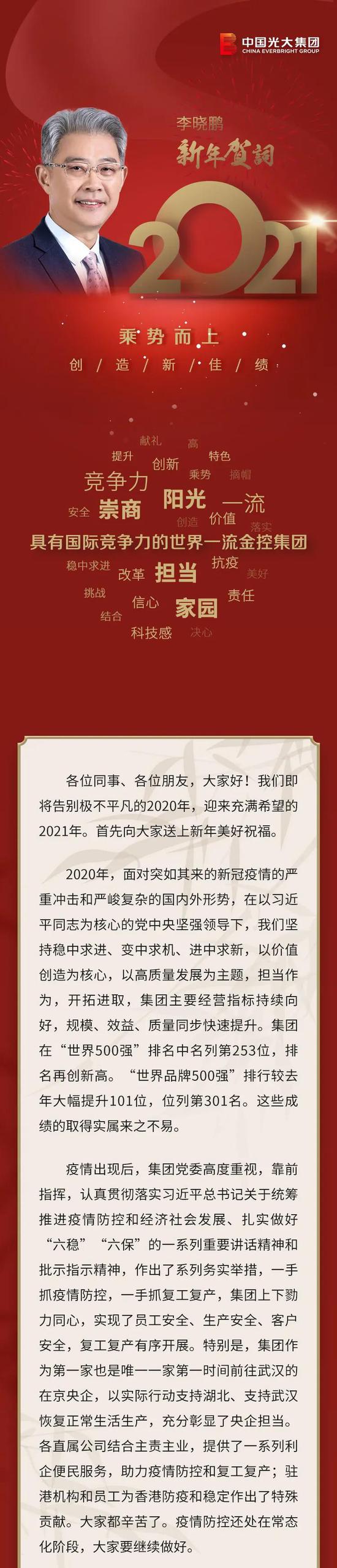 光大集团李晓鹏发表新年贺词:保持战略定力 助力"十四五"开好局