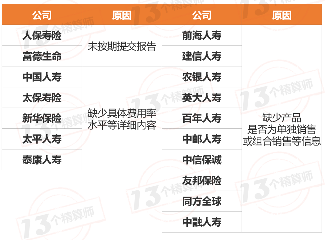 注:上表对于报告报送问题和产品问题都被点名的公司,已经进行了去重处理,故而是30家寿险公司。