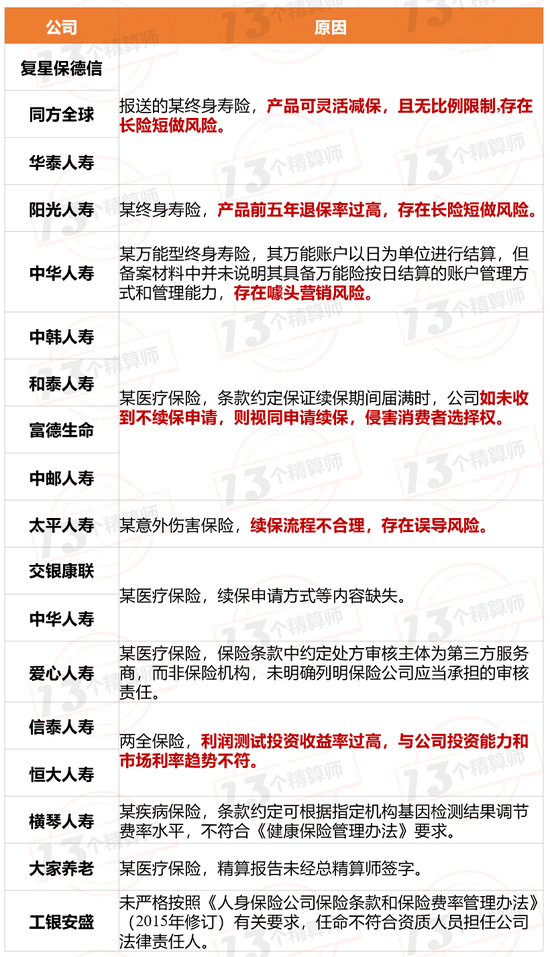 先看一下,这次因11项产品问题,被通报的18家寿险公司!