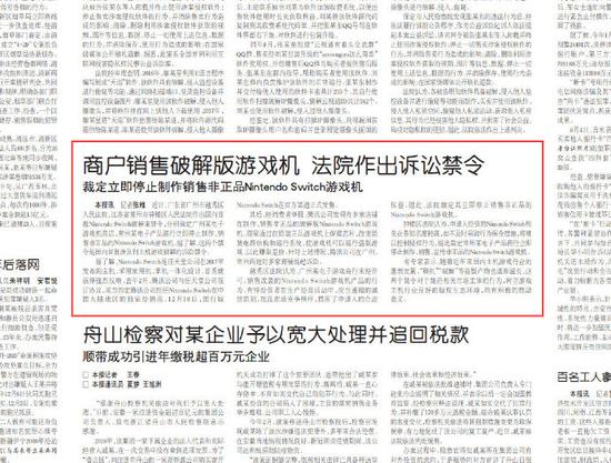 国行Nintendo Switch于2019年12月正式发售,并由腾讯担任中国大陆地区的独家经销商。法治日报近日刊载了一篇文章,文章中表示,广东省广州市越秀区人民法院、江苏省常州市钟楼区人民法院近期作出国内首批Nintendo Switch破解案禁令,分别裁定广州某电子游戏机商店、常州某电子产品商行立即停止制作、销售非正品的Nintendo Switch游戏机。