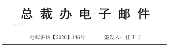 2020年的最后一天,华为对外公开了11月4日任正非在企业业务及云业务汇报会上的讲话。这篇讲话是以电邮【2020】146号文件发出来的,签发人是任正非。还顺带加了一个按语,这个按语不知道是谁写的,至少是轮值董事长一级吧,不过,胆有点大。
