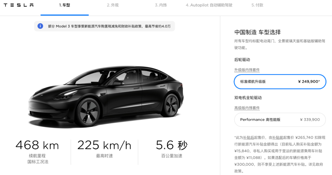 同时,全新Model 3标准续航升级版起售价保持24.99万元起不变,特斯拉还推出了Model 3 Performance高性能版,售价33.99万元起。