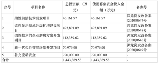 按照目前的上市计划,柔宇科技决定申请首次公开发行不超过1.2亿股人民币普通股(A股),计划募资144.34亿元,扣除发行费用后将主要用于五大方面。