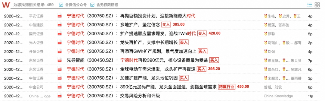 比如,近期创下新高的宁德时代,被中信建投、国元证券、东吴证券等券商上调其目标价,其中2020年12月30日中金公司发布的最新研报上调宁德时代目标价至450元人民币。