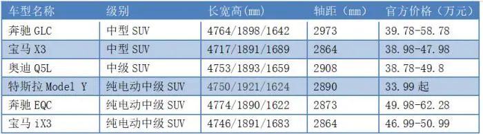 就Model Y而言,真正意义上冲击的是奔驰GLC、奥迪Q5L及宝马X3等豪华品牌的中级SUV。