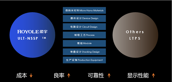 不过,每一次的技术迭代往往都会带来一轮行业洗牌,进入柔性显示时代之后,全球柔性显示产业由韩国企业控制的上游技术单级格局已经有所松动,三星已经不再对上游技术路线具有统治地位:凭借着刘自鸿、余晓军、魏鹏等一群有着“斯坦福+清华”背景的博士团队共同努力,柔宇在三星的LTPS(低温多晶硅路)技术路线之外,开创了一条与之平行的、全新的ULT-NSSP(超低温非硅)技术路线,这条路线从原材料到生产工艺再到生产设备,都与LTPS路线大相径庭——这意味着,相比过去十多年传统显示面板领域从1-2到的“引进+改良”路径,在柔性显示领域,中国企业首次做到了底层技术路线从0-1的原创突破。