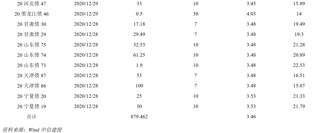 二、利率债发行与到期方面,本周累计发行了23只利率债,总发行规模879.46亿元,到期300.6亿元,周内净融资额578.86亿元。其中,国债及政策性金融债方面,本周未发行国债及政策性金融债,考虑到年底因素,本周国债及政策性金融债发行情况整体上处于正常状态。