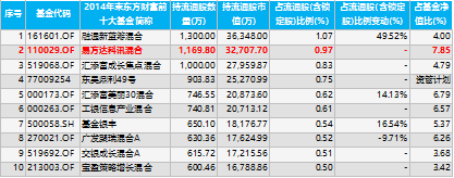 2015年2月13日晚间,东方财富同时公布了2014年年报。新浪财经上市公司研究院的数据显示,共有157只基金持有东方财富,但我们只需要选取东方财富净值占比最高的那只基金即可。