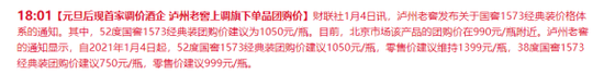 盘后更有利好传来,元旦后现首家调价酒企,泸州老窖上调旗下单品团购价。