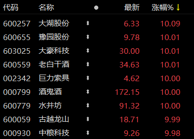 白酒板块个股涨幅榜
