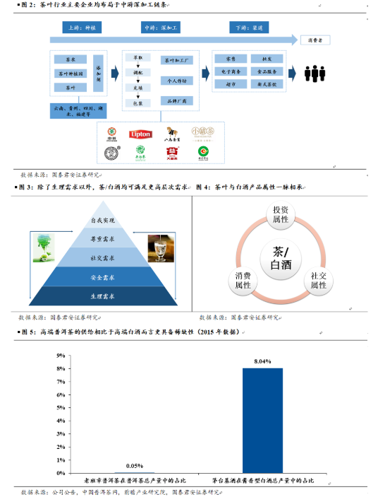中国茶叶(A20258.SH)与澜沧古茶(A20266.SZ):大而全VS小而精。1.中国茶叶:大而全,消费品思维加持,成长可期。在普洱茶及绿茶持续放量的背景下,基于产品标准化/简单化发展+品牌建设力度加大,我们看好中国茶叶持续获得渠道渗透率的提升,逐渐占领消费者心智,最终实现市场份额的收割;2.澜沧古茶:小而精,沿着精品化路线茁壮成长。在高端普洱茶行业扩容的背景下,基于公司未来将在加大营销力度进行渠道扩张/品牌建设的同时,通过标准化仓储物流中心的扩建,保障产品品质跟上需求扩张的步伐,因此随着短板逐渐补齐、长板逐渐拉长,我们看好公司精品化战略带动下的长期成长性。总体而言,中国茶叶和澜沧古茶分别作为大而全、小而精两种茶企的代表,对于国内茶叶行业的发展皆具有一定的借鉴意义。