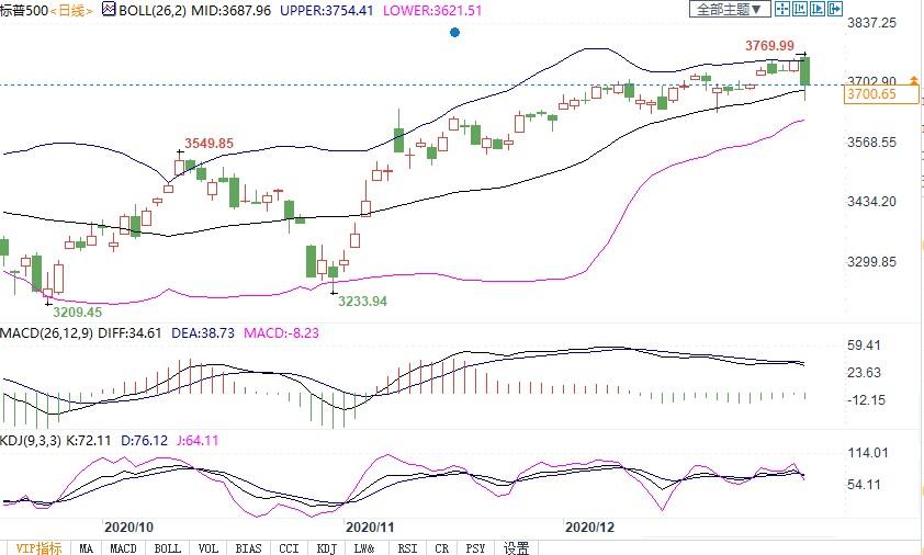 1月4日(周一),市场分析师JeffCox撰文指出,进入2021年,华尔街迎来了多年来最糟糕的首个交易日,通胀加剧现象、民主党可能大获全胜以及疫苗推出缓慢都是背后的原因。如果通胀上升速度超过预期,对投资者来说可能是有害的。不过,美联储埃文斯称平均通胀需要很长时间才能达到2%,在相当一段时间内必须保持宽松。整体来看,美股短期面临回调风险,但中长期或仍有冲高机会。