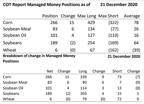 新年假期导致本周交易时间缩短,COT 本周将再次推迟发布。我们预计,玉米和油籽复合物的基金将进一步增持,多头和空头比率预计将保持在80% 以上,表明基金中存在看涨的共识。