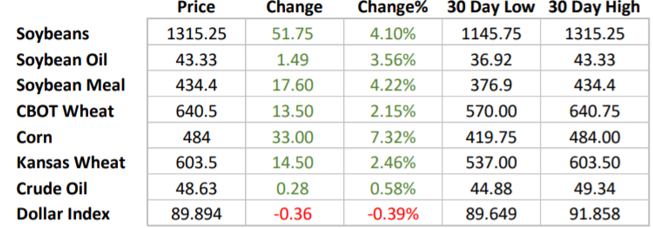 较短的交易周并没有阻止油籽复合物的持续上涨,南美洲的不利天气预测只是增加了市场基本面的看涨。玉米受阿根廷恶劣生长条件的影响价格被推高。两个月来,玉米和油籽复合物的反弹与我们基本乐观的前景一致。