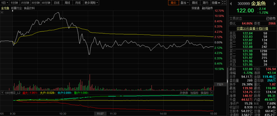 与之相反的则是,市场以大为美现象愈演愈烈,千亿大市值龙头股迭创新高,恒力石化、韦尔股份、牧原股份、海康威视、云南白药等各行业的“茅”涨停,值得注意的是,高位指标股金龙鱼盘中出现了18%的巨震,资金分歧巨大。
