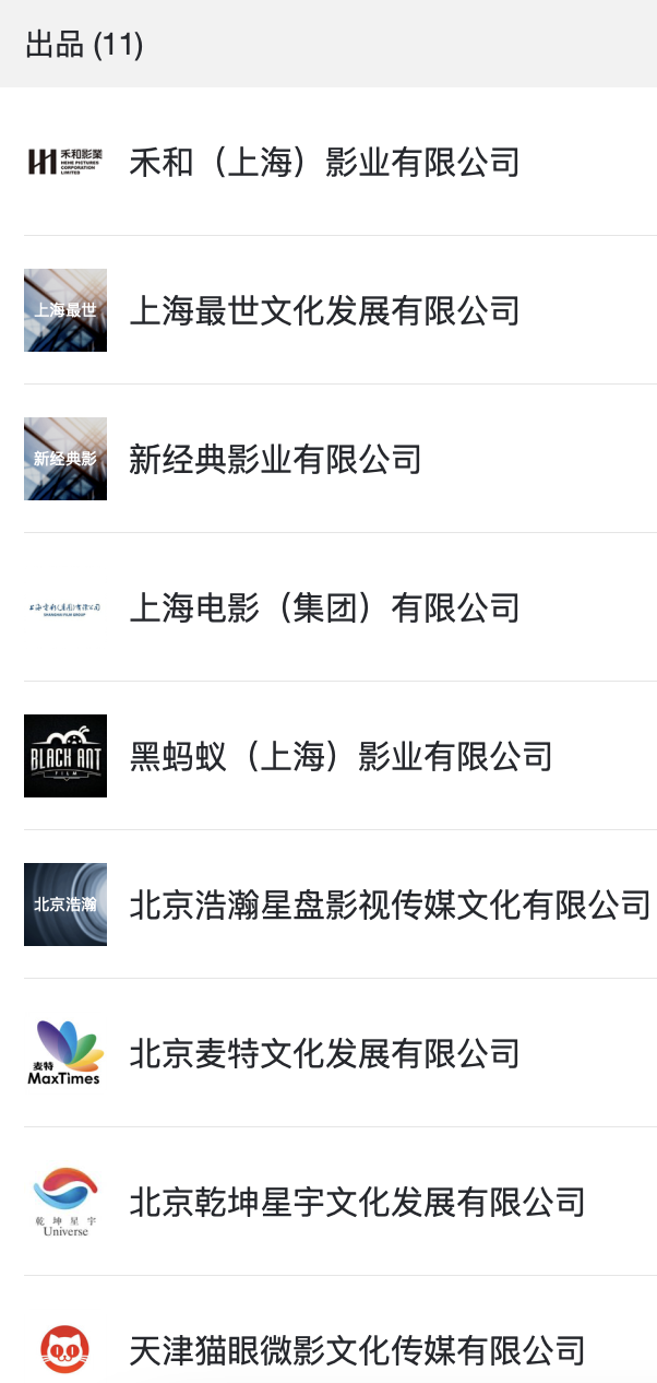 猫眼专业版数据显示,《晴雅集》背后的出品方有11家公司,包括禾和(上海)影业有限公司、上海最世文化发展有限公司、新经典影业有限公司、上海电影(集团)有限公司等。启信宝数据显示,上海最世文化发展有限公司为郭敬明100%持股。