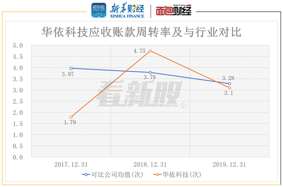 图3:2017至2019年华依科技应收账款周转率变动及与行业对比