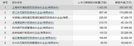 解禁涉及股东共8位,均为法人股东。东方生物发行价21.25元/股,最新股价211.11元/股较发行价有近9倍的浮盈。相关股东的持股成本更是低于发行价。