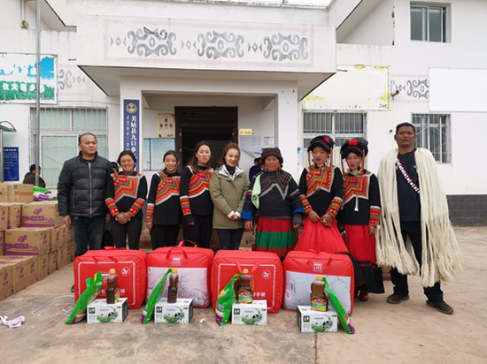 12月24日一早,四川永辉超市的志愿者们带着首批物资从西昌出发,经过4个多小时的车程后来到了九口村。许多村民在得知这一消息后,来到村党群服务中心外面,唱起了当地山歌欢迎志愿者的到来。