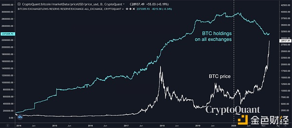 2020年,随着机构买进比特币,加密货币交易所的比特币持仓量开始减少
